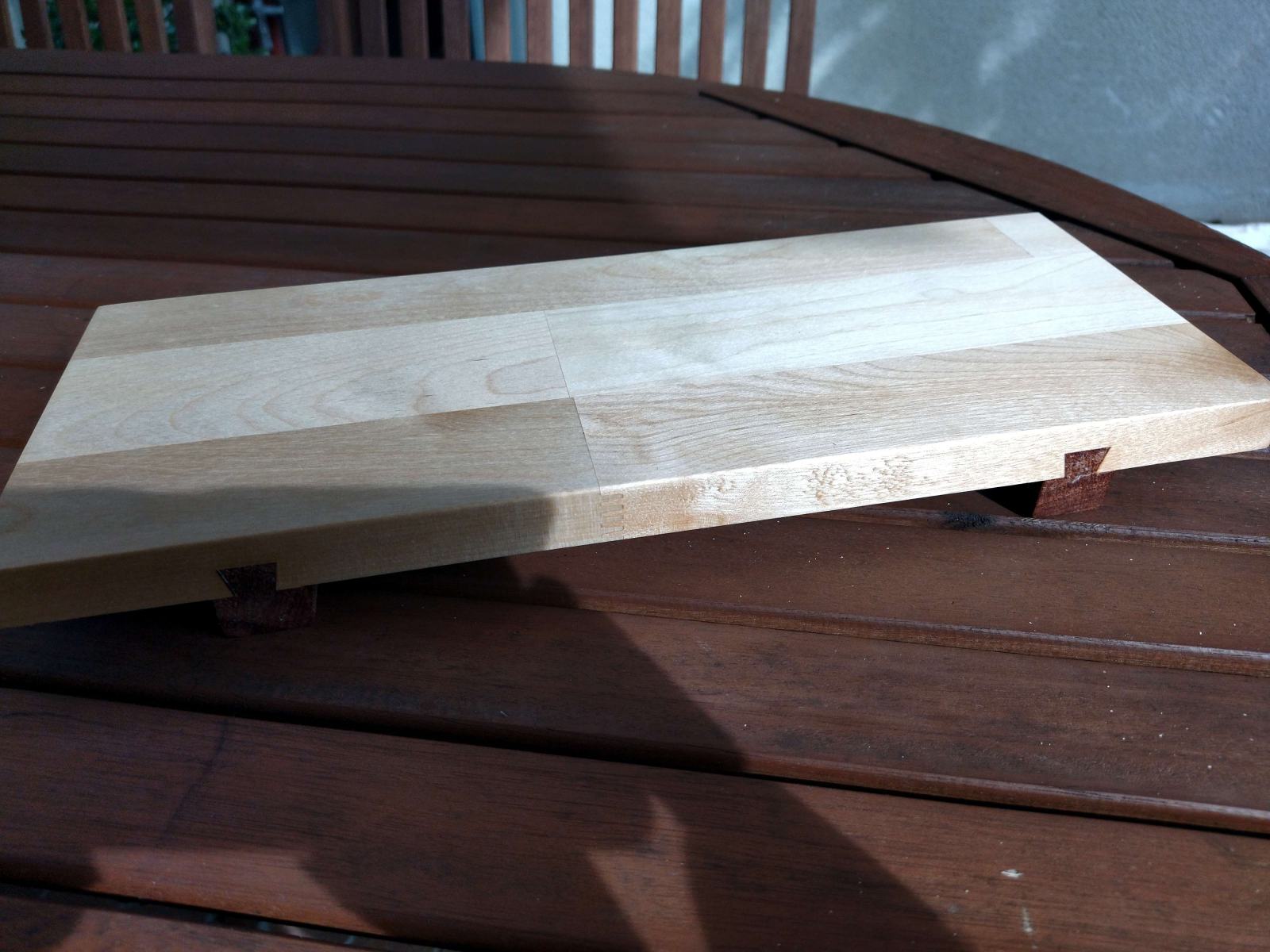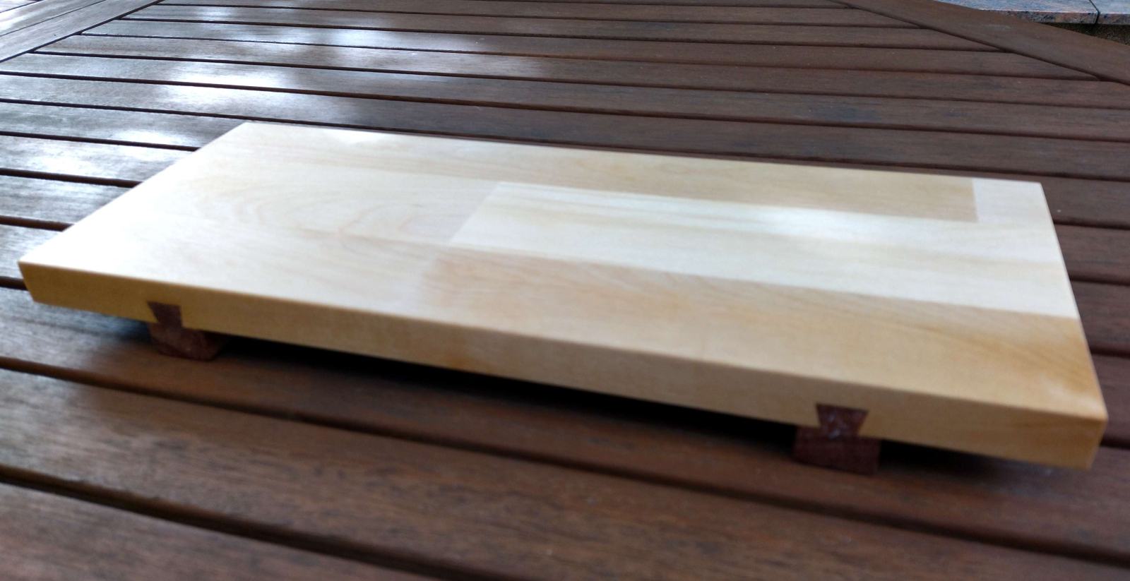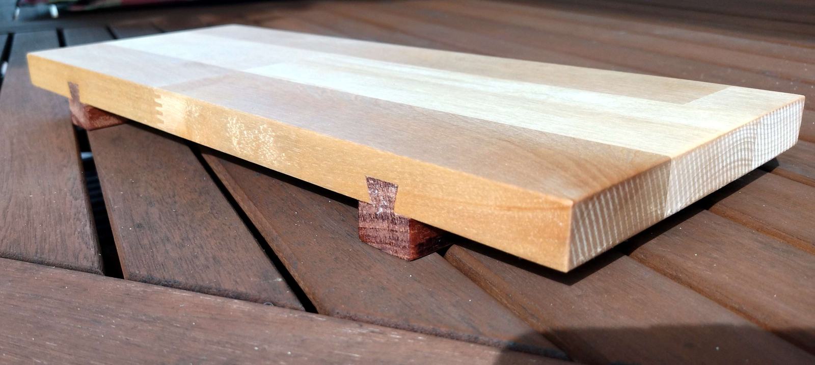 Stolni centerpiece izrađen od drva breze i mahagonija, finiširan food safe uljem.