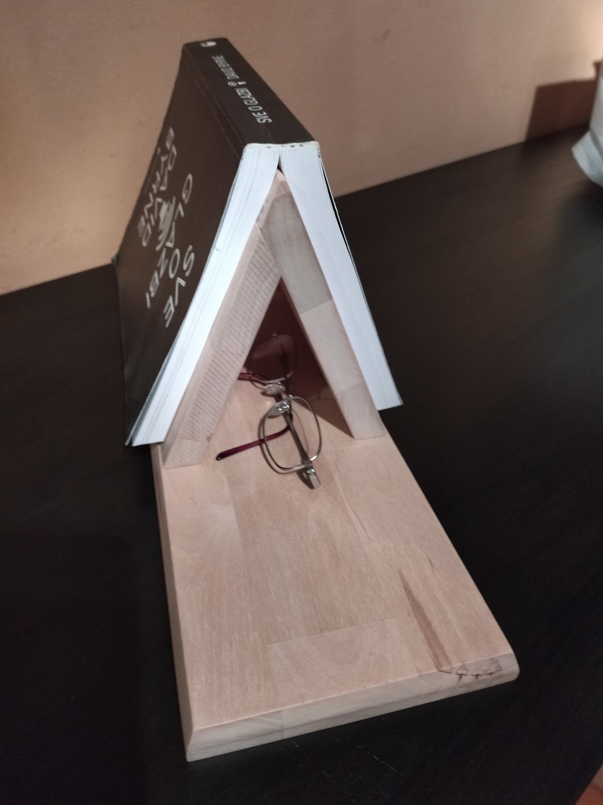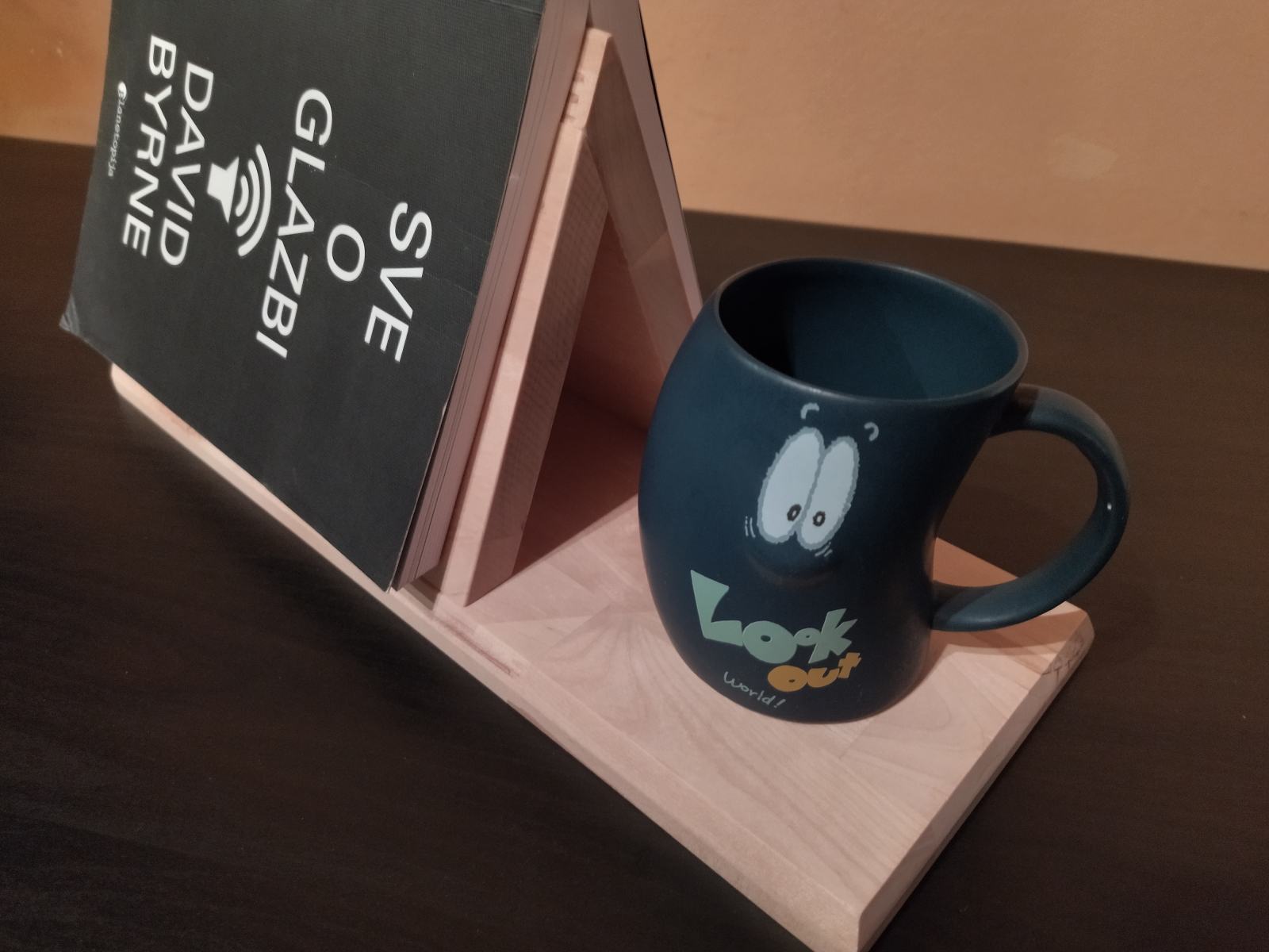 Stalak za knjigu i naočale sa podmetačem za čaše od brezovog drva.
