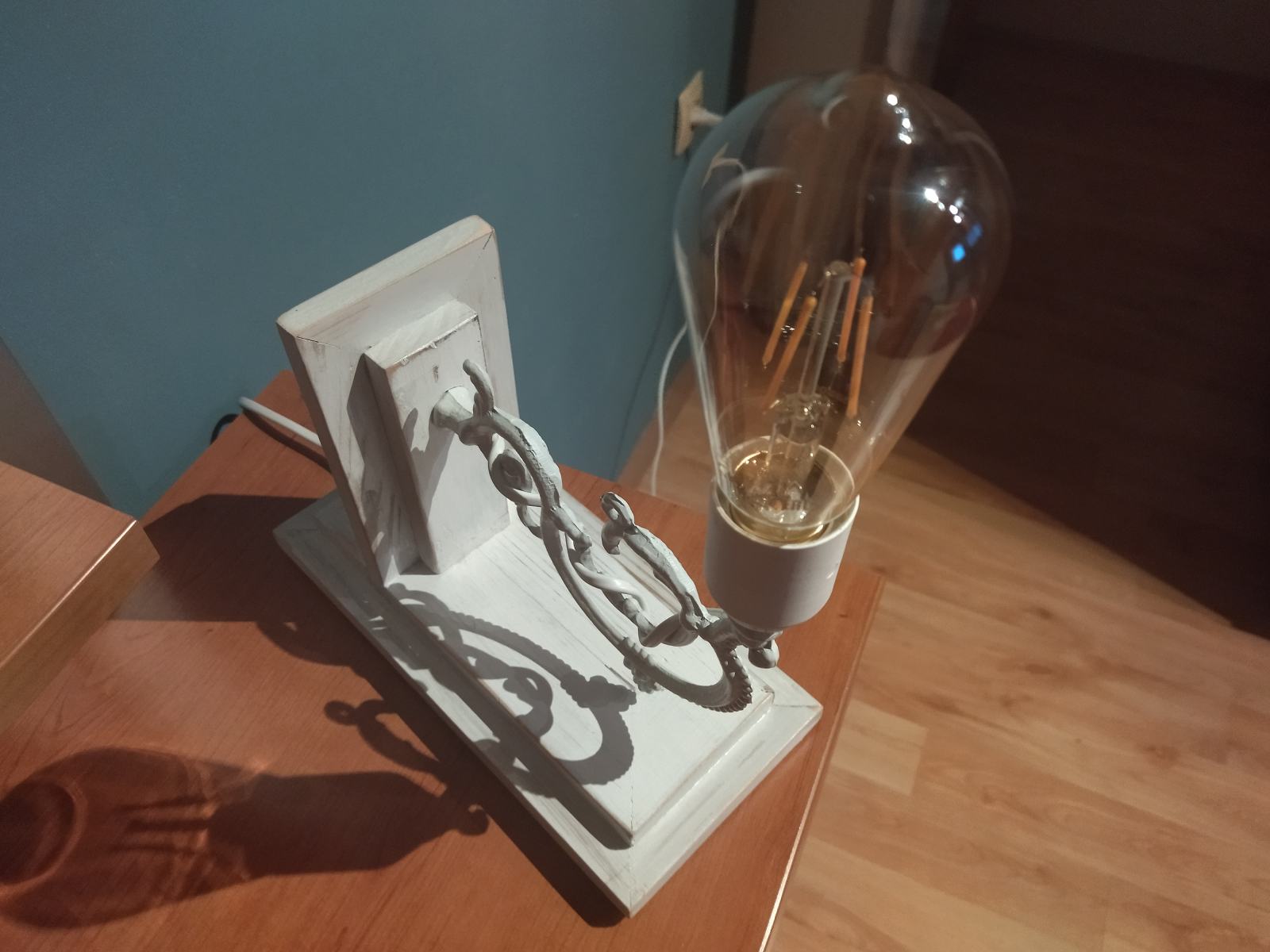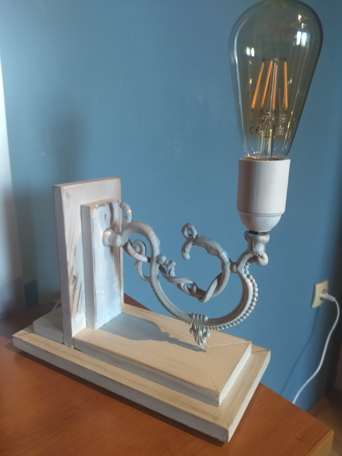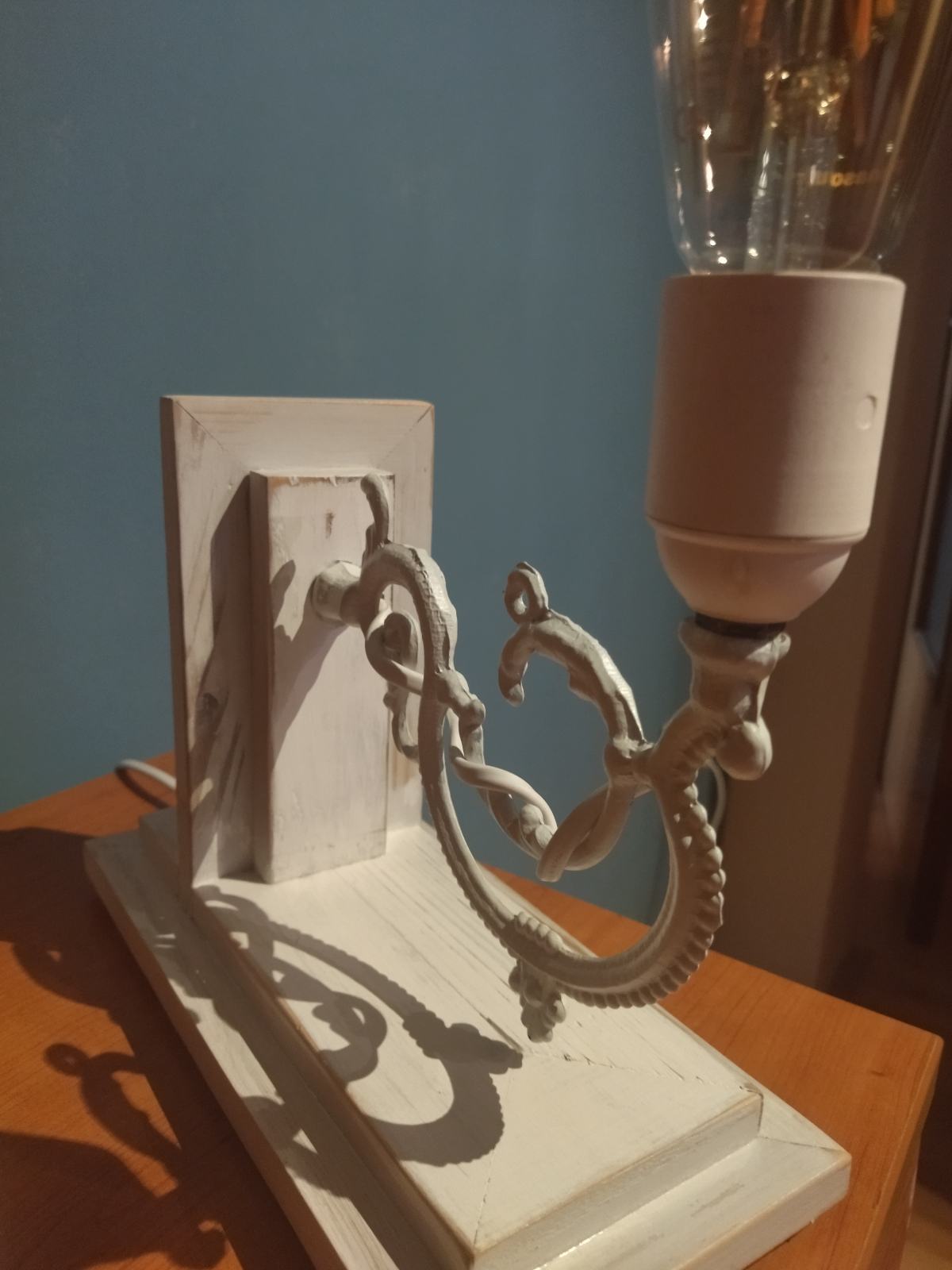 Stolna lampa od recikliranog drva u chabby chic stilu.